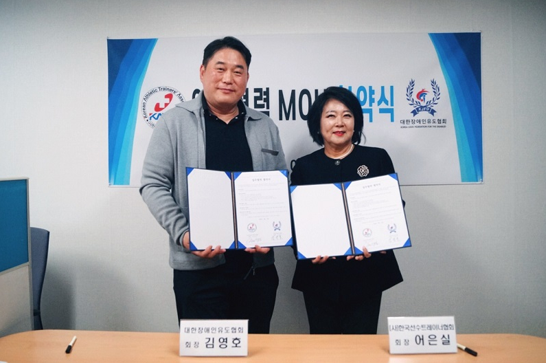 우리 대한장애인유도협회는 4월 14일 화요일, (사)한국선수트레이너협회(KATA)와 업무협력 협약(MOU)을 체결하였습니다.